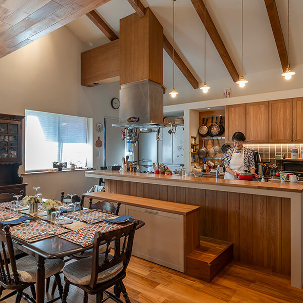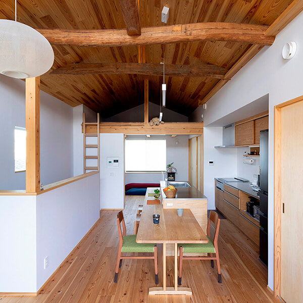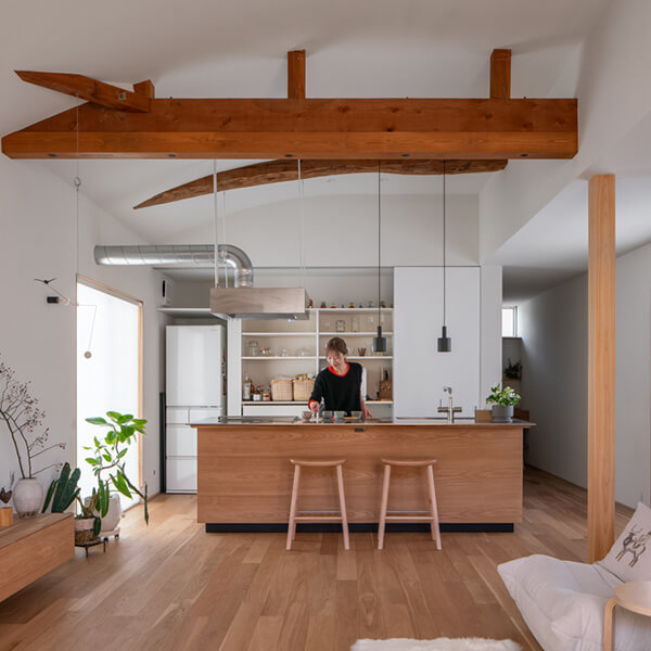 仕事場としても使う キッチンと生活の場を 共有し合う住まい