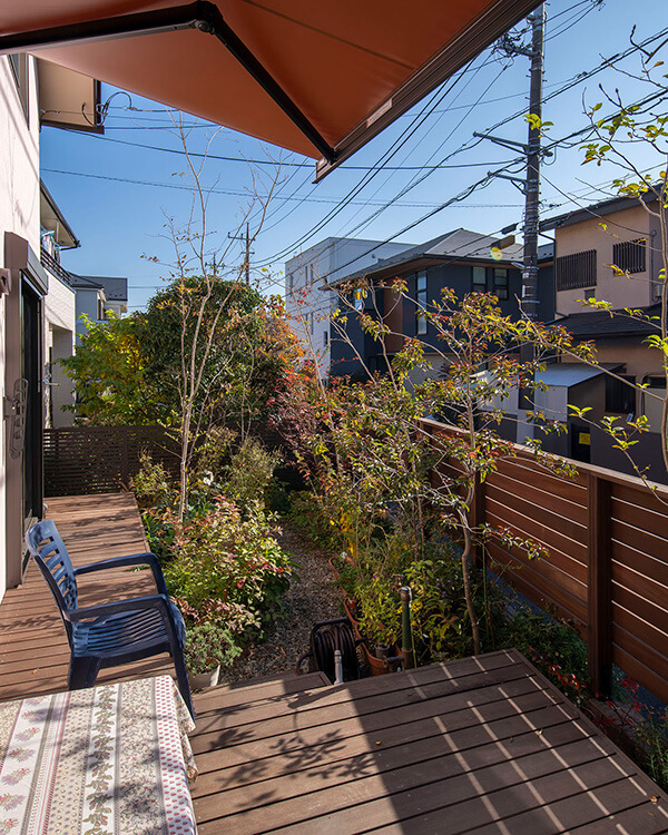 植栽は園芸家に依頼。東北で自生していた雑木でまとめ、自然な眺めをデッキから楽しんでいます。