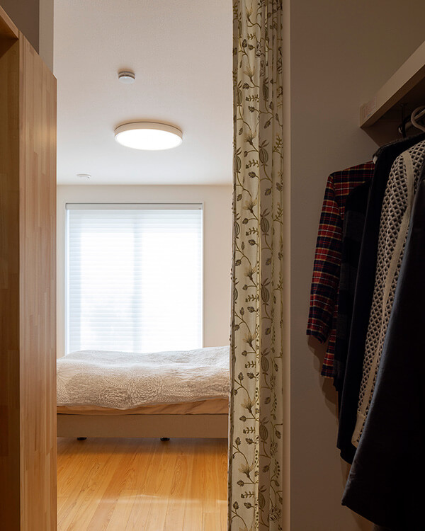 家じゅう室温が安定しているので、寝室とクロゼットはカーテンで間仕切りをしています。