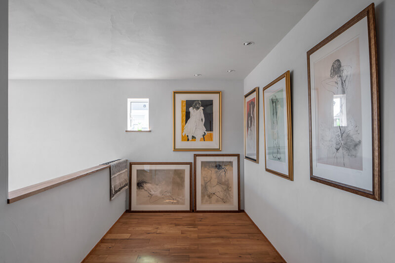 終の住まいという視点から、間取りは徹底的にシンプルに。1階にはLDKと浴室、トイレなど水まわりを集約。生活のほとんどを1階で過ごせる間取りにしました。アートを飾ることを前提に、窓の位置なども綿密に計算されています。