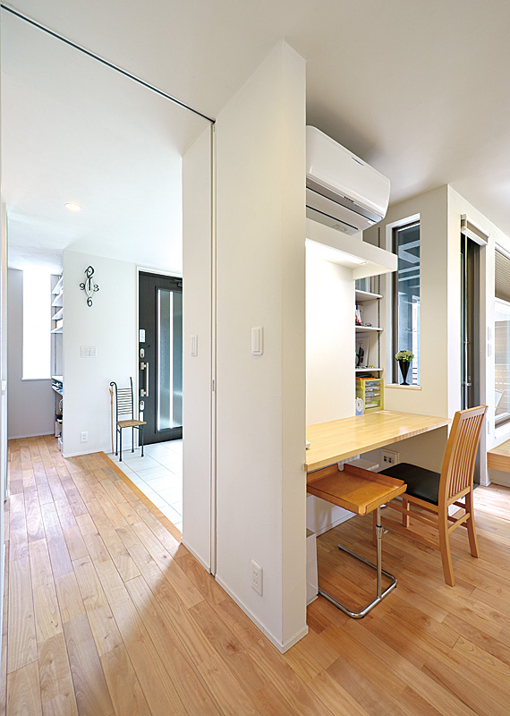 玄関ホールに隣接した寝室にはデスクが造り付けられました。