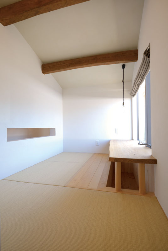 3階は、開放的な1、2階とうって変わって天井の低い、小屋裏部屋と書斎に。書斎の窓からは、島原半島の象徴的な存在である雲仙普賢岳と向き合うことができます。