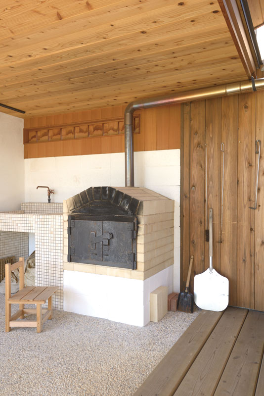 前庭にはピザ窯をしつらえた離れの小屋を設置。屋外で食事を楽しむことも可能です。