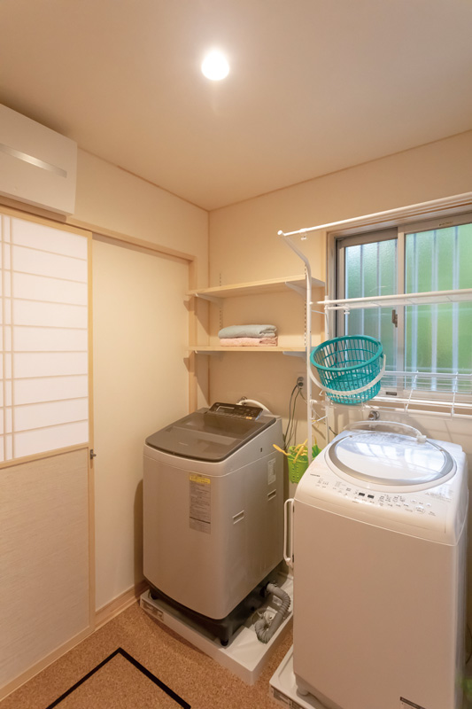各世帯が好きなタイミングで洗濯できるよう、あらかじめ洗濯機を2台置けるスペースを確保。