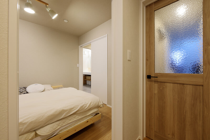 1階の主寝室は、玄関側とキッチン側に開口部を設け、回遊性の高い動線で、効率良く行き来できます。