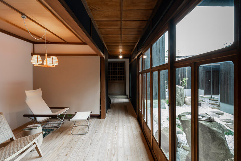 母屋は居住部となるLDKと来客用の大広間とに分割。その奥にある元和室はモダンな洋家具を置き、庭を眺め、読書に勤しむライブラリーに改修しました。
