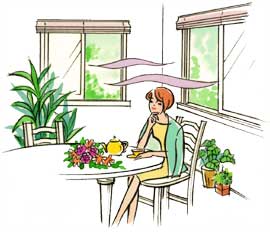 この不快さを防ぐ秘訣は、窓の外側で日射を遮ることです。窓の内側のカーテンなどで防ごうとしても、実は50%以上の日射熱が室内に侵入し、こもってしまうのですが、窓の外側にスクリーンなどを設ければ、約70%もの日射熱をシャットアウト。うだるような暑さも緩和できます。